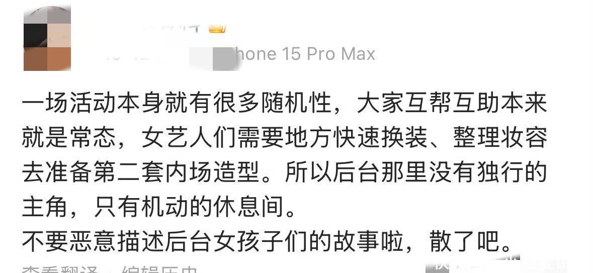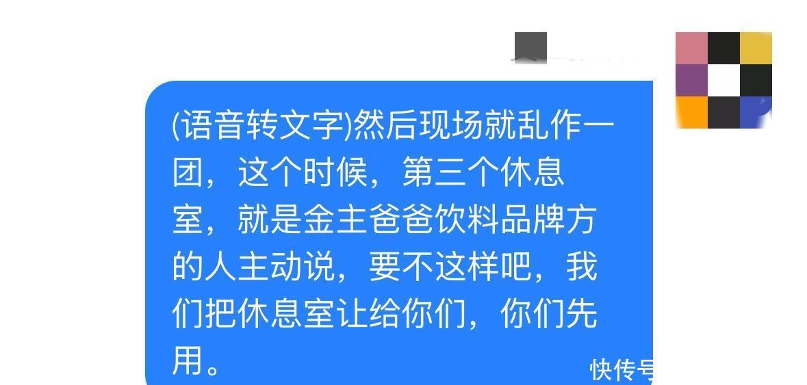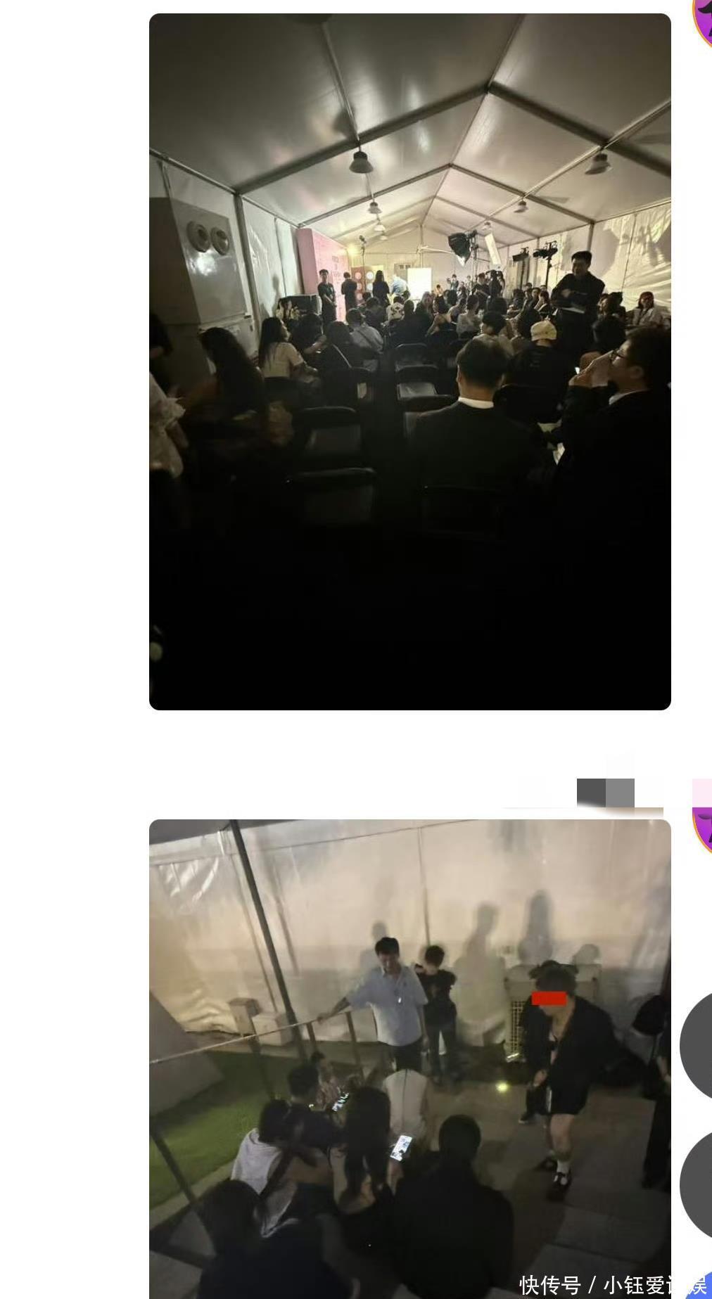起因是当天活动现场真的挺拥挤的,现场也是很小,休息室有限,当然品牌方只是为咖位高的艺人提供了休息室,而小咖位的就只能在卫生间换一下了。