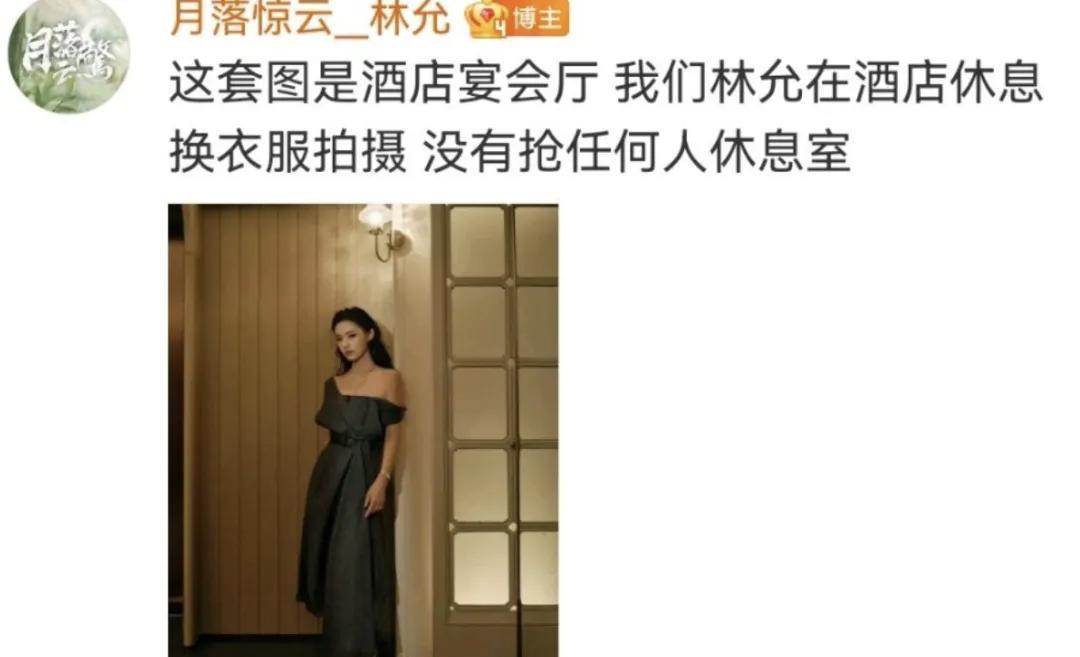 后来,林允那边还特地放出了自己在酒店换衣服的证据,称“自己根本没用过休息室,”可是这个抢休息室的瓜却落在她的头上,也是挺无辜的,更可以说明这次的事怕是有心人搞出来引战的。这么多人,网友们也没心思一个个猜吧!